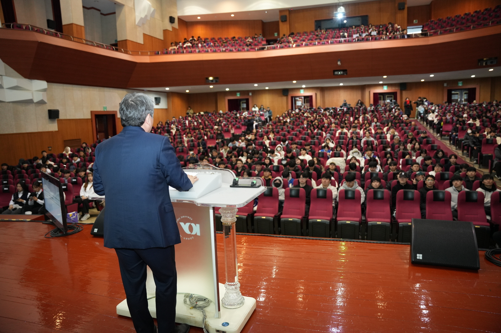 3일 논산 창의융합캠퍼스에서 열린 DYC 성과보고회에서 김용하 총장이 인사물을 하는 모습.JPG