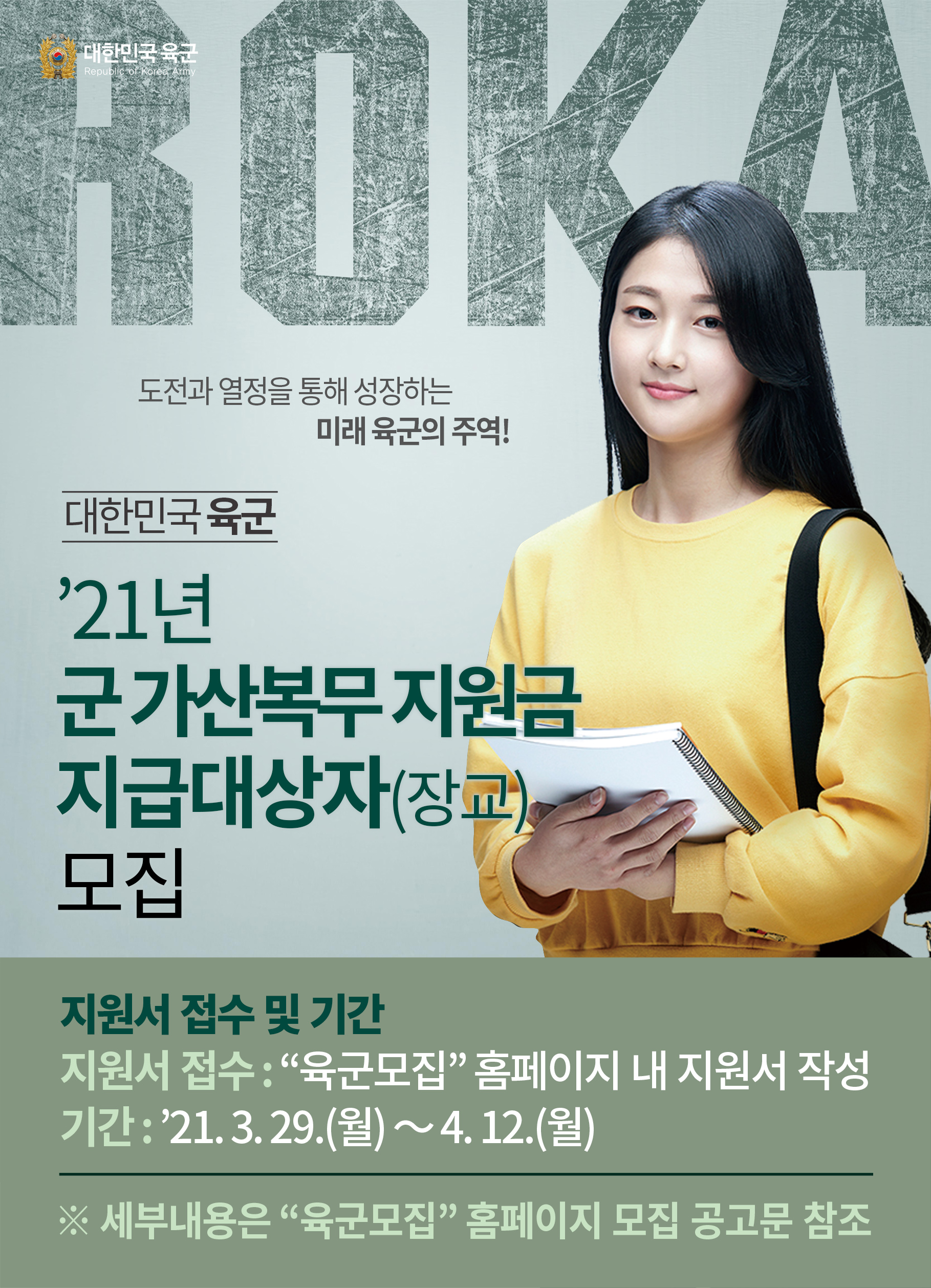 제목 (~4/12)군 가산복무 지원금 지급대상자(장교) 모집